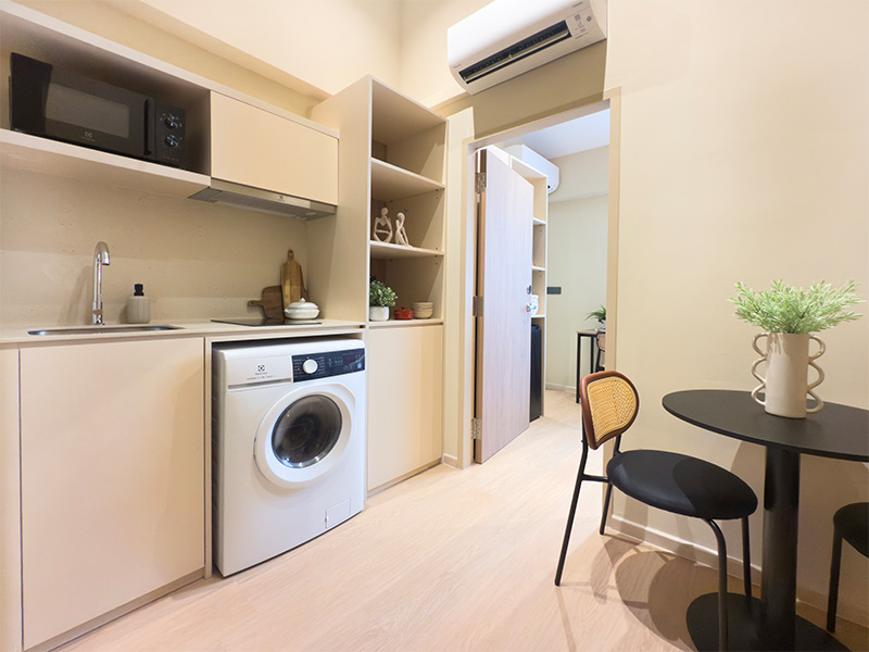 - The fully-furnished rooms come with ensuite bathroom, fully equipped kitchenette and a washer-cum-dryer.