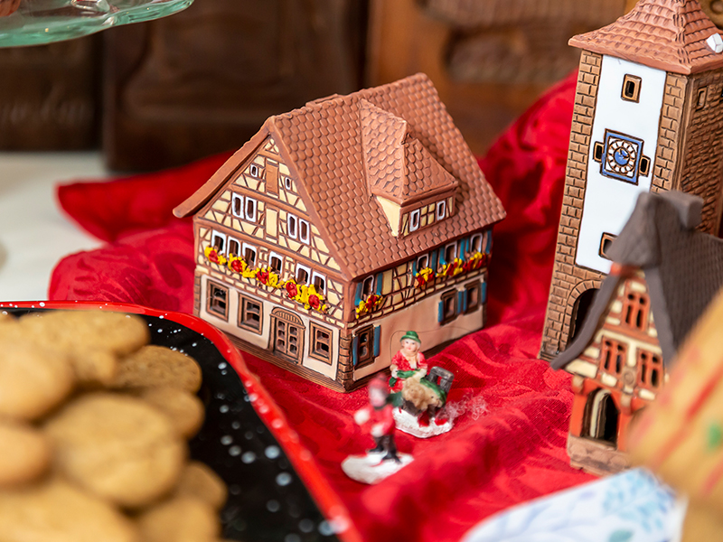 One incredibly special Singapore decoration is a gingerbread house made by the “Joss-Stick Man”. My friend and I took our daughters to his shop years ago as part of a Girl Scout badge. Turns out, they make these incredible gingerbread houses so we both bought one, picking out the decorations we wanted on our own houses. Mine is an incredibly personal memory of Singapore. And it makes a really great little village when added to some houses we bought in Germany, in the cute town of Rothenburg ob der Tauber.