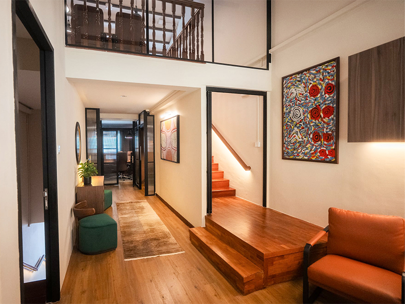 Inside, the layout feels more like a series of well-considered rooms than a traditional office. There’s a central lounge where members can work or meet clients, a boardroom for more formal discussions, and a larger space used for presentations and small workshops. There are also private rooms set up for coaching sessions, counselling or simply focused, uninterrupted work, all within this Ann Siang Road address.