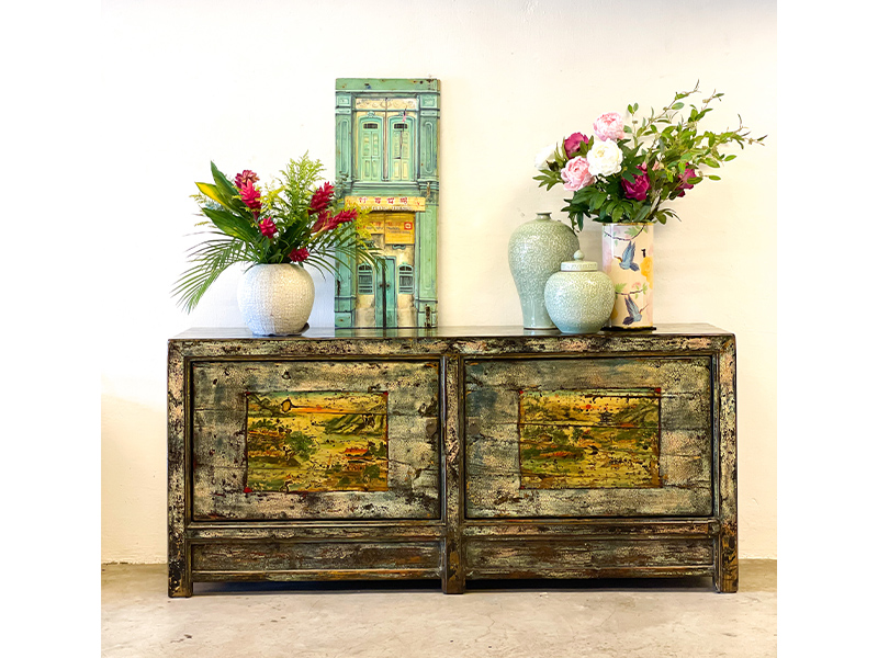 - Repainted antique sideboards from Gansu and Shandong Provinces offer generous storage whether for linen, cutlery or books, and add a rugged charm to any room.