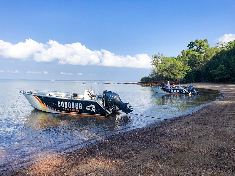 While we were staying at Cobourg Coastal Camp, Damon drove us to visit other parts of the peninsula. One stop was Black Point Culture Centre and Ranger Station, which had loads of informative exhibits and artefacts about Cobourg Peninsula’s history. We also visited Smith Point beacon, stopped by a beach to hunt for mud crabs, and went bush bashing. Later that afternoon, Travis took us out on his boat for some fishing; I caught a little Australian Stripey.