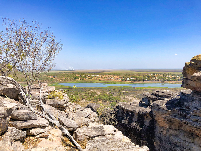 We also hiked up Injalak Hill with local guide Ezeriah to check out its famous Aboriginal rock art. Over 8,000 years old, the drawings in red, yellow, white and black pigments feature people and fairy-like Mimi spirits portrayed in an x-ray style, along with creatures such as the long neck turtle and long tom fish. We were told the fascinating Dreamtime stories behind the images (many were also used to teach morals and life lessons) and how they were created, giving us a glimpse into the spiritual significance of the art and beliefs of Australia’s first people. We also climbed to a lookout, which gave us an amazing bird’s-eye view of Gunbalanya and its surroundings.