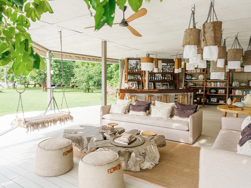 While you are relaxing between experiences, take a sip at the lodge bar while browsing through a special selection of collected books and photos. When you return to camp at night, you can delight in a dinner under the stars made with fresh produce grown by Time + Tide or sit around the suspended fire pit, high atop the river bank.