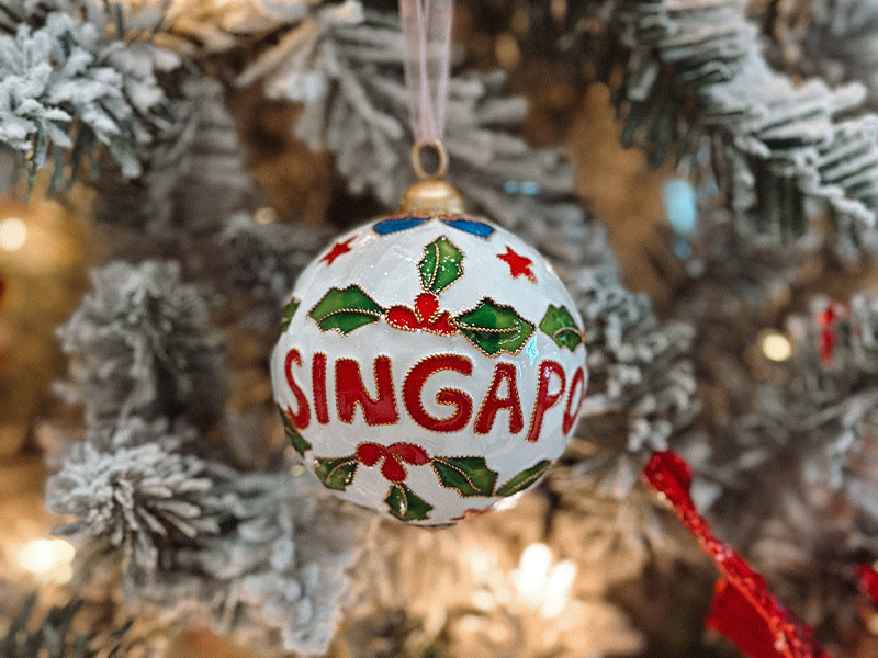 Silk Walk’s Singapore Design Glass Baubles are hand-painted with iconic Singaporean motifs to add a delicate, shimmering touch to your tree. The Cloisonné Baubles, meanwhile, are crafted with intricate metalwork and enamel, featuring local flora and fauna for a luxurious, timeless look.