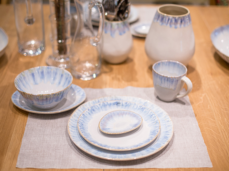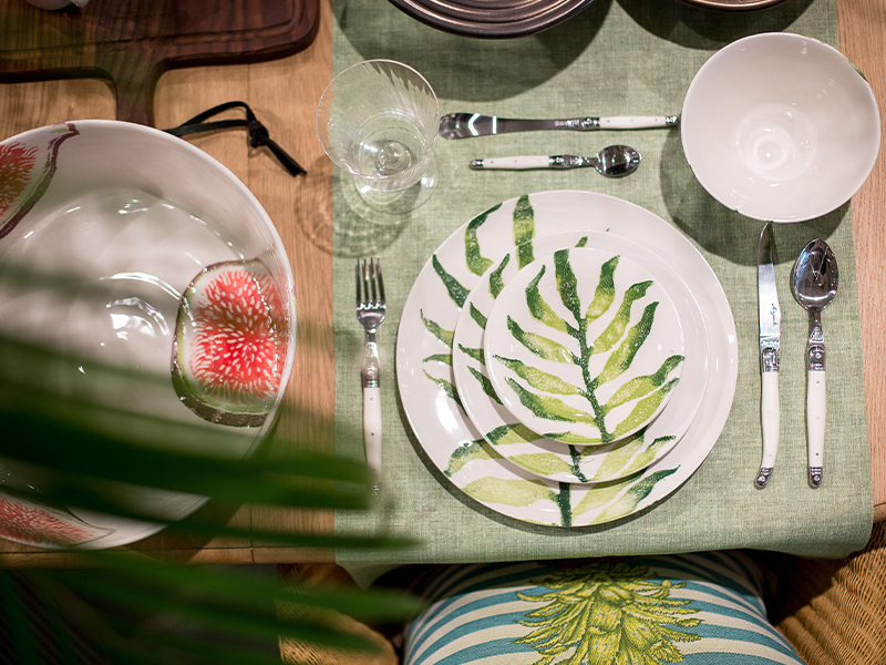 I’d select crockery from either our fine stoneware Nova range from Portugal, which is a really nice and simple collection, baked at a high temperature so it’s shock-resistant. Or, for something with more flair, go for the exclusive hand-painted ceramic range from Italy. This range has vibrant designs ranging from leaves and fruit to sea animals. It’s a visual collection – and quite a talking point over dinner; and it’s made exclusively for House of AnLi.