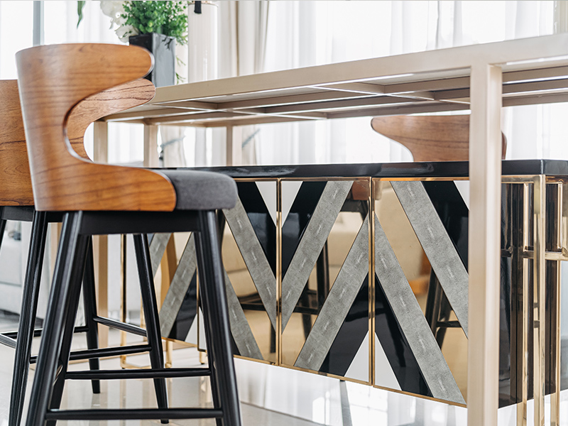Materials and finish can range from solid teak, oak and walnut wood to powder-coated stainless steel, glass, tile, and marble. All designs can be made-to-order to your colour and size choices. The extensive selection includes custom-made dining tables and chairs, sideboards and bar cabinets, armchairs, coffee tables and more.