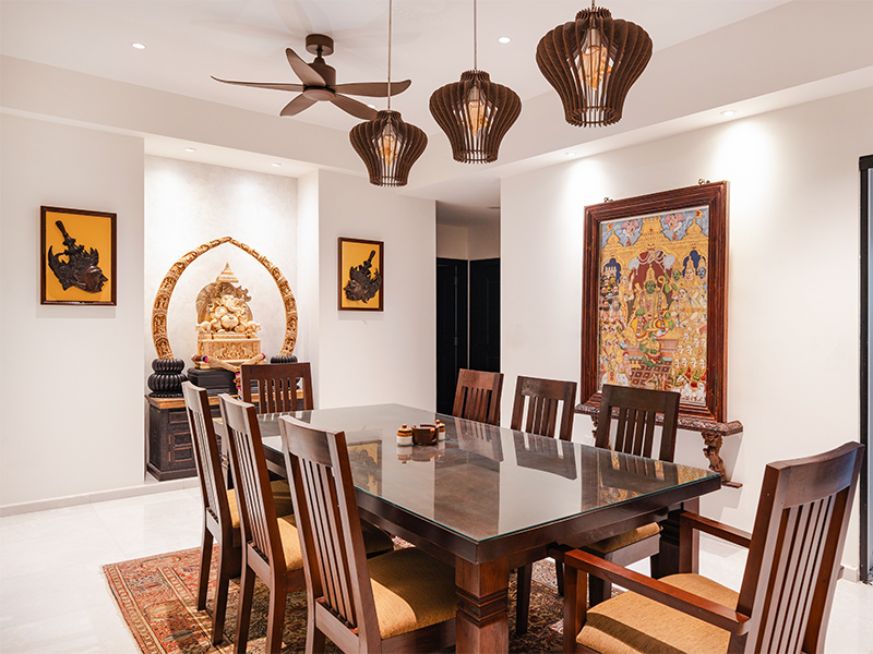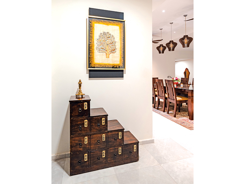 For me, design doesn’t need to follow a specific style – it should capture the homeowner’s story and lifestyle. My husband and I have lived in different parts of the world, and I wanted our home to reflect that journey. That’s why you’ll find furniture from the US, pieces from Vietnam, and Indian motifs like the Hamsa swan in the glass divider. These layered experiences from different cultures create a personal story and serve as a narrative – a story of experiences rather than a showroom of trends.