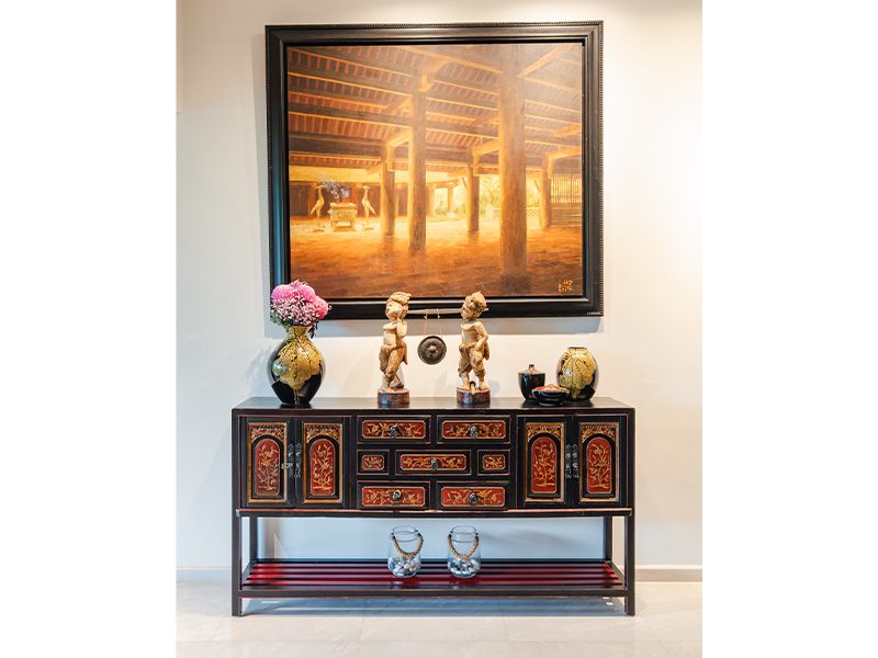 It represents bringing art into daily life. The divine swan motif can be deeply cultural, yet the piece itself is contemporary. It’s also a great reminder that bold choices can become the soul of a home. Every guest who walks into our home remembers it.
