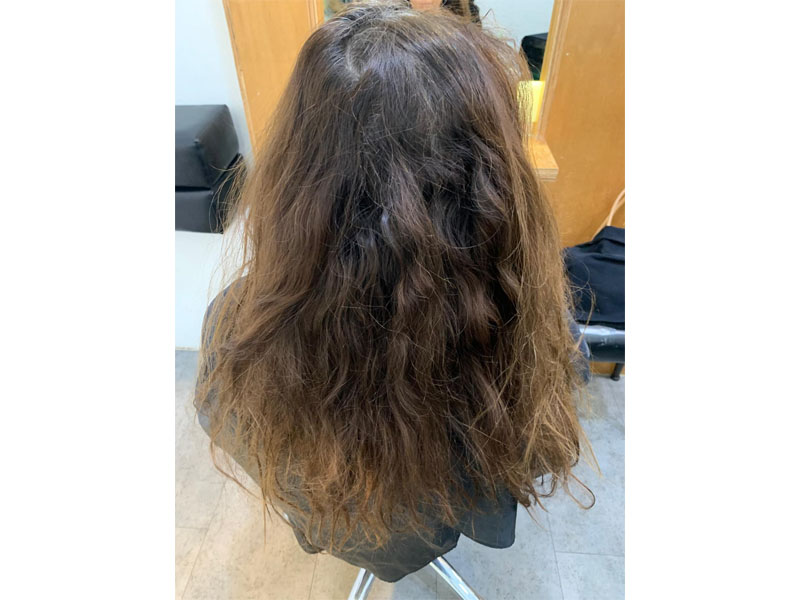 I am coming to terms with my frizzy hair as I get older, but when I’m shown the back of my head, it’s quite a shock. I have some straight hair on top, but underneath is almost crimped, and the constant colouring has made it dull and lifeless.