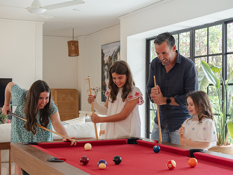 The house was run-down when we first viewed it, but the proportions and footprint set it apart. The bedrooms are all ensuite and a good size, the main reception area has a high ceiling and the additional rooms to transform into an office, gym, pool room and guest suite made it an attractive proposition. You know you can make it a home when you can immediately place the Christmas tree! A delayed move in date allowed for the time required to carry out basic improvements to make the spaces work for our family.