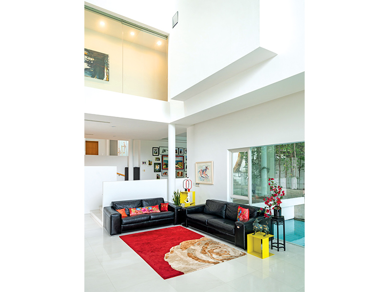 The house is designed beautifully with large windows, high ceilings, lots of sunlight and an open plan overlooking the greenery and the sky. The spacious kitchen is our favourite area as we all love to cook together as a family! Another favourite spot for me is my art studio.