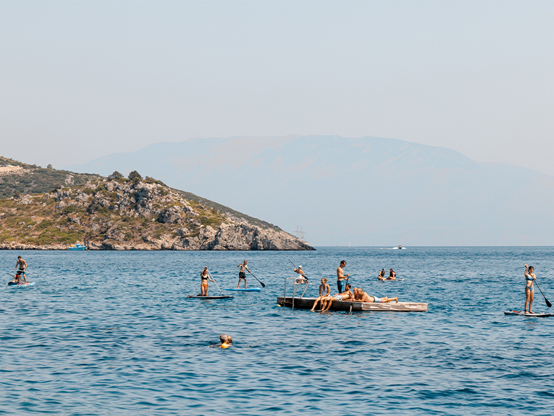 From the Ski Shack, you can stand-up paddleboard, kayak, sail, windsurf and water-ski to your heart’s content. Safety and tuition is included too, so there’s no need for helicopter parenting. The sweeping white decks with with comfy sun beds and shady umbrellas are the perfect place to read a good book and soak up the chilled atmosphere. Springing off the wooden diving board and swimming out to the pontoon is a refreshing reprieve from the Mediterranean sun.