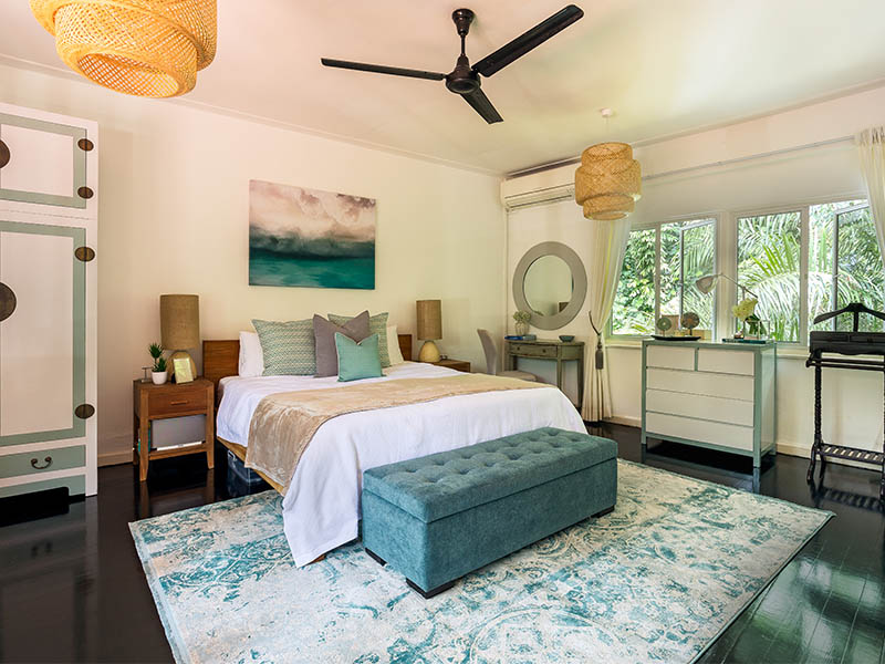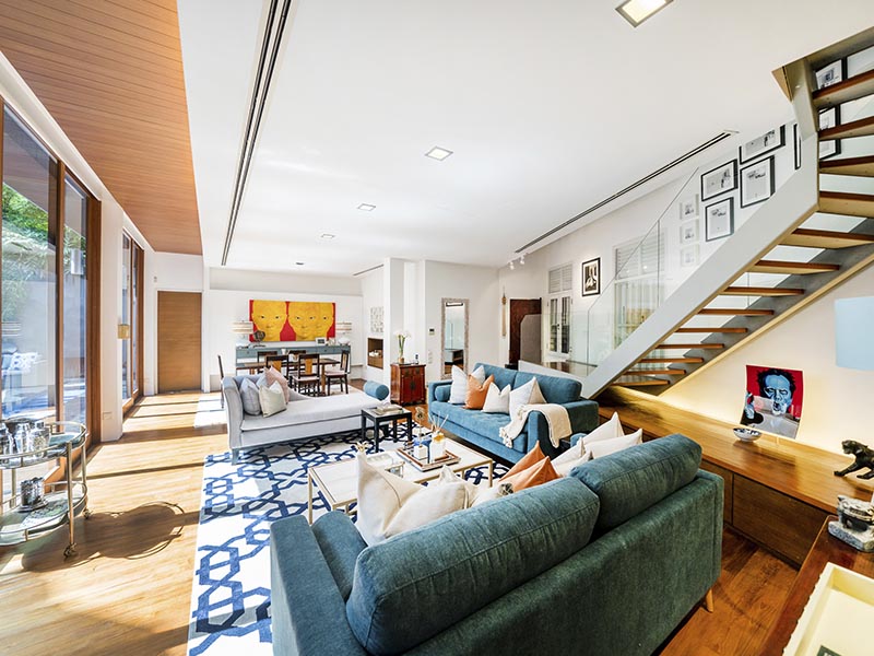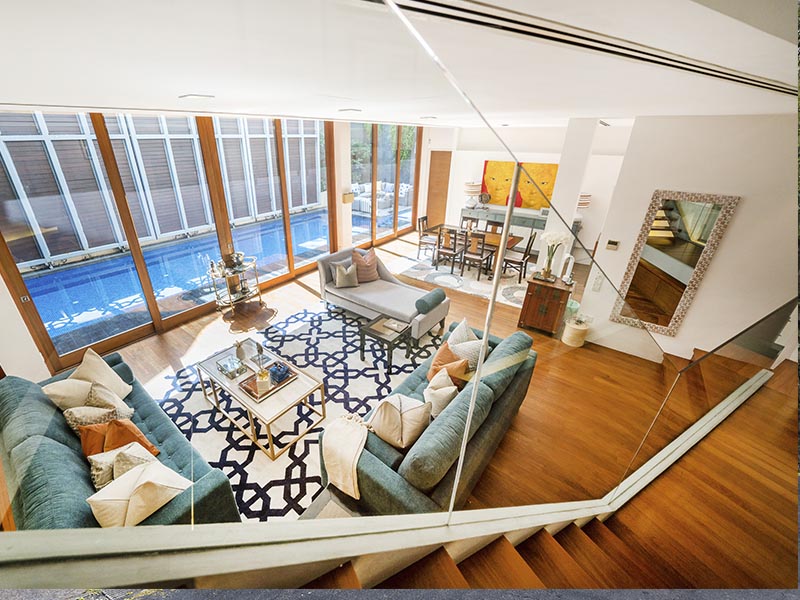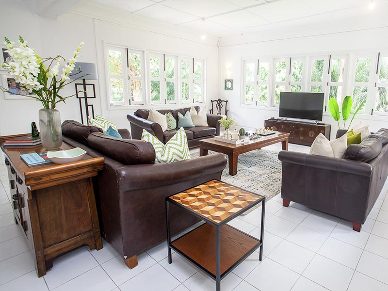 This bungalow epitomises liveable luxury, styled in a glamorous but welcoming aesthetic, and accented with gold metallic highlights to balance the use of dark wood. Multiple lounge spaces allow the family to entertain in style and unwind in comfort.