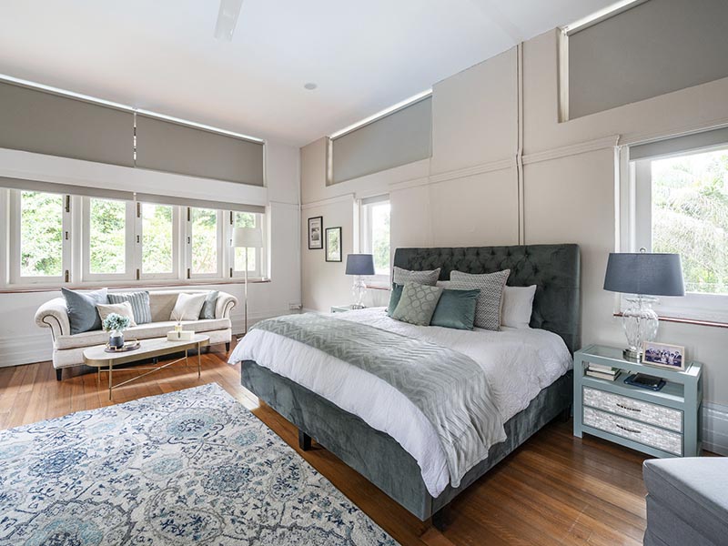 Made over in the style of a boutique hotel, a classic palette of soothing neutrals, woods and accents of silver and glass help to create an inviting, liveable home.