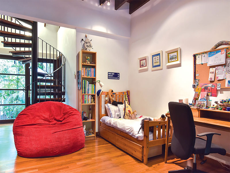 The Joneses had very specific requirements when they began to search for their home on the island. Claire recalls, “We wanted to find a home here that simulated our lifestyle in South Africa – doors open all the time, kids in and out of the garden, and a thoroughfare of animals. Finding that in Singapore, with a garden big enough for us, was hard.”