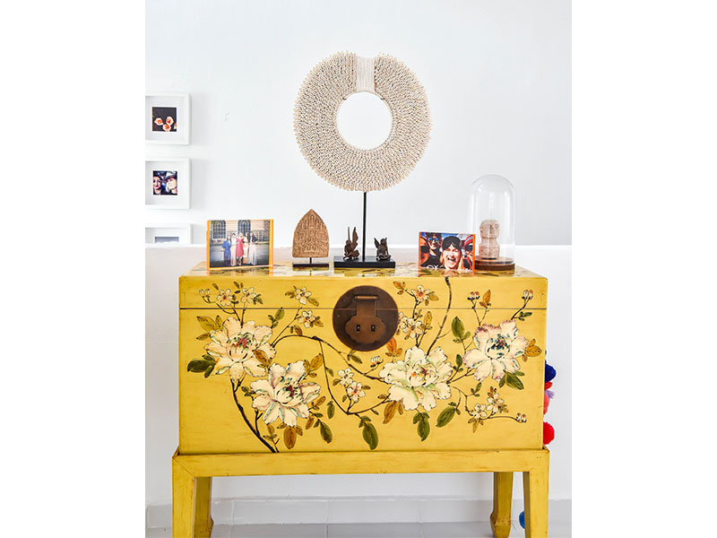 “A friend was relocating to the UK so I bought the chest, but it needed changing up. I found some online inspiration – it was on Pinterest or Instagram – and decided I wanted it pink. Then I found a Singapore-based lady who runs a business called Totally Chalked. She hand-mixes all the chalk paints and colour matches anything you want.”