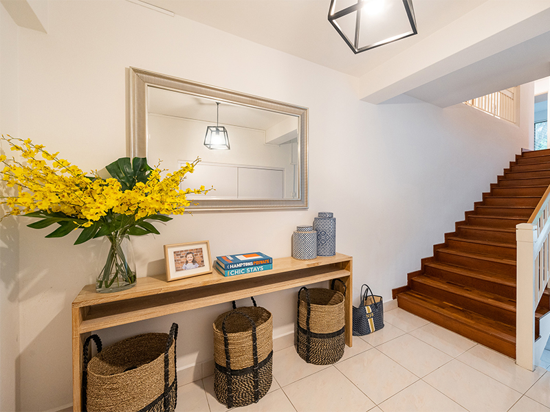 We then moved to the entry to the home. As this is the first place guests see, it’s essential to make it feel warm and inviting. Following through from there were the formal and informal dining areas. We were keen to set the right tone for the purpose and functionality for each different space. We rearranged the furniture and décor accents and also rehung the art with some assistance from the handyman.