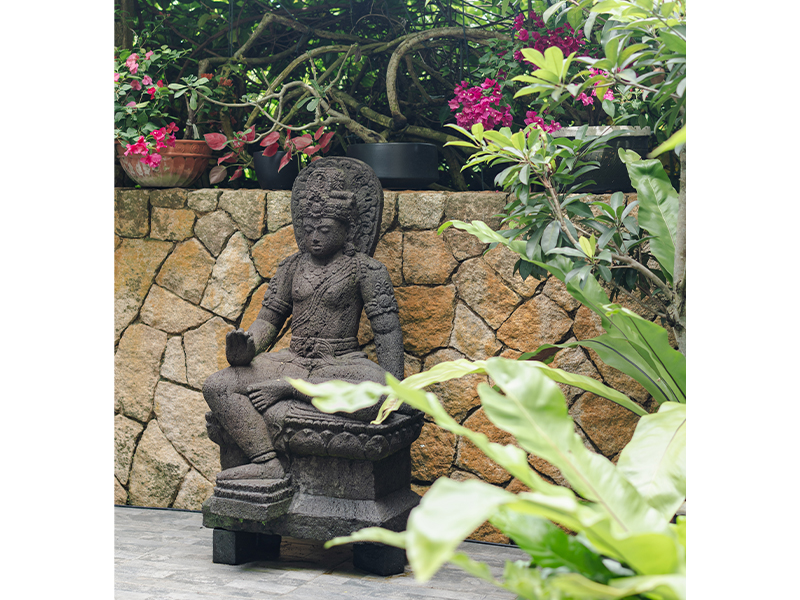 We immediately fell in love with the garden surrounding the house – it brings life and serenity to every window view. We added our own touch by stringing warm lights throughout and placing a Buddha as the centrepiece of our outdoor dining area. It’s one of our favourite spots to unwind, share meals, have a drink and enjoy the peaceful atmosphere together with our dog Koda.