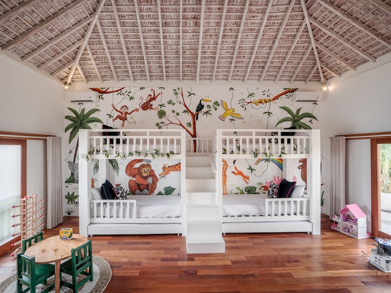 Seeking some time together with the whole gang? Nothing quite does it like a big family vacation. And this Bali villa can cater for everyone, including grandparents, aunts, uncles, cousins, second cousins…the list goes on! Villa JOJU has nine bedrooms, including two kids’ bunk rooms. That means you can invite up to 22 family members or friends to stay.