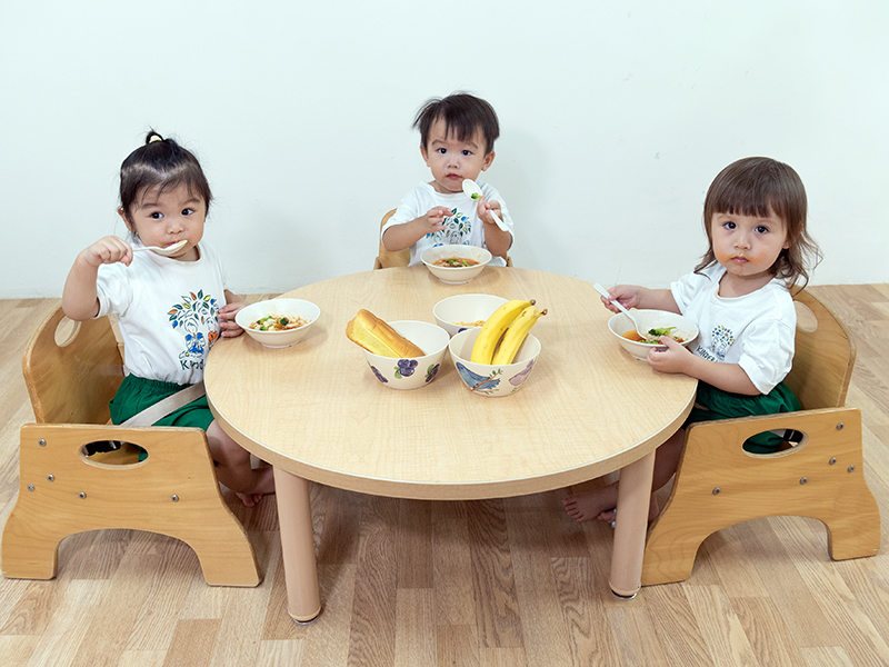 The infant care daily schedule includes ample time for gross motor activities, social-emotional development, reading, exploratory play, naps, meal times, snacks and milk times. The menu is planned by a certified in-house nutritionist, which is in line with the Health Promotion Board’s (HPB) Healthy Meals in Preschools Programme. This ensures that Kinderland children absorb the necessary nutrients for each development stage.