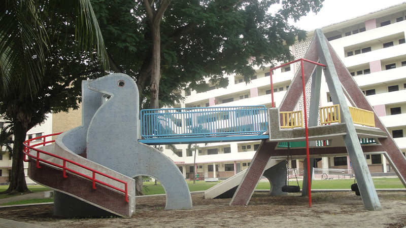 Did you know? Today, the remaining blocks of Dakota Crescent are clustered around the Dove Playground (above), one of Singapore’s best-known heritage playgrounds. (Another of these that many people are familiar with is the Dragon Playground in Toa Payoh.) Several of these structures were the vision of Khor Ean Ghee (b.1934); he was a former HDB interior designer and watercolour painter, and he also served as the president of the Singapore Art Society.