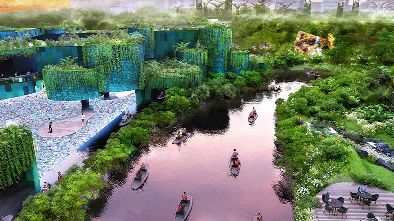#2 A canopy boardwalk will provide an elevated, over-water encounter with nature, and also link to the Gardens by the Bay MRT station, while international art collective teamLab will be launching a flagship museum, including a “multi-sensory pedal kayak experience”.