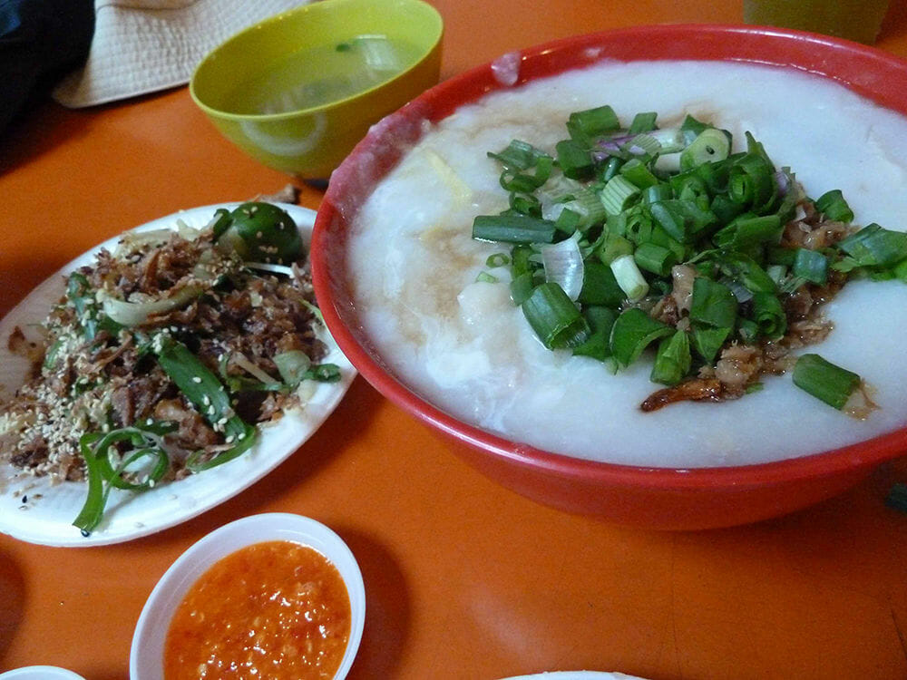 Wander over to the middle line of stalls and you’ll see a long queue stretching from an unremarkable-looking little stall with little or no English signage. Zhen Zhen Porridge (#01-54) is so popular that you need to plan the rest of your ordering around it; it rarely takes less than 30 minutes to get your porridge. Once at the front of the line, it’s all business, as a crotchety lady-boss of few words takes your money while her husband grimly ladles his masterpiece into a large bowl.