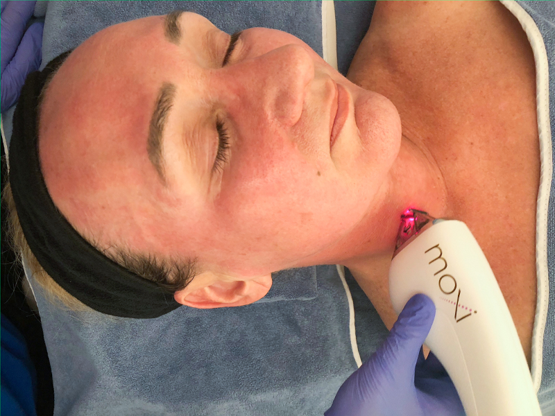Dr Bernard typically uses MOXI on the face, neck and décolletage – but it can also be used on the body and arms.