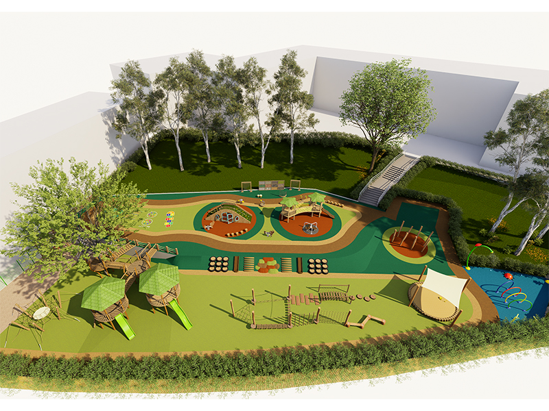 - Imaginative and dramatic play zones featuring wooden decks, platforms and themed structures that encourage storytelling, role‑play and collaborative learning