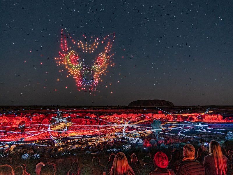For the first time, the ancient Mala story, which has been passed down through generations of Anangu people, is being shared through a light show. The experience is called called Wintjiri Wiru, meaning “beautiful view out to the horizon” in the local Pitjantjatjara language. It’s an entrancing combination of light, laser, and drone technology.