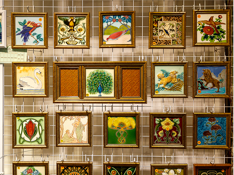 Our tiles range from 85 to 265 years old, with some being more rare than others. My favourites change all the time, especially when new ones come into the gallery. Our most valuable tiles, however, are those made by William De Morgan (19th century) and John Sadler (18th century).
