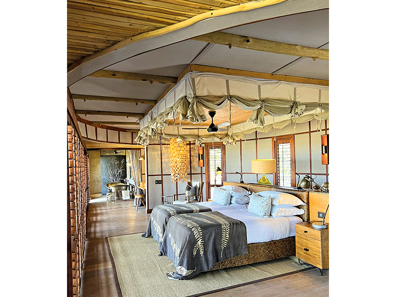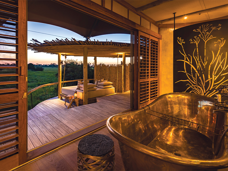 Wilderness Mombo is aptly referred to as “the place of plenty”. It captures the wanderlust of the colonial African adventurer, but with a gob-smackingly impressive décor. The latter includes a copper bathtub and room-divider that shines light through grass stencil cuttings onto a lavish suite.