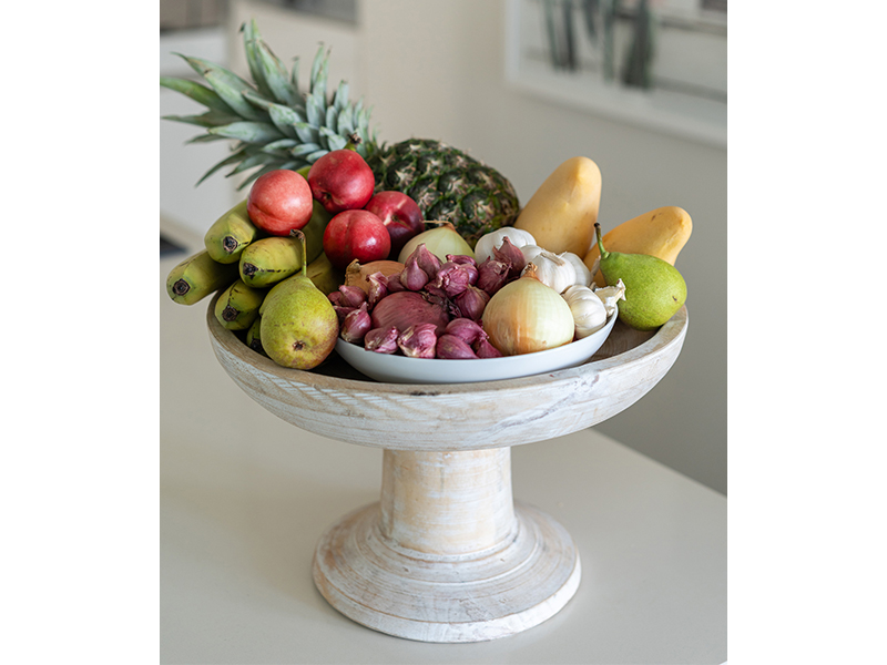 I visited the Island Living warehouse early into moving in and fell in love with practically everything there. I bought multiple statement pieces for different parts of the home. Favourites include an extra-large standing pedestal for the kitchen island which I fill weekly with a load of tropical fruit, onions and garlic (I’m a nutrition & wellness coach, after all!). It acts as a colourful focal point of the kitchen. I also have a number of large, bleached white pottery vases that remind my husband of Ancient Greece, which he studied in college.