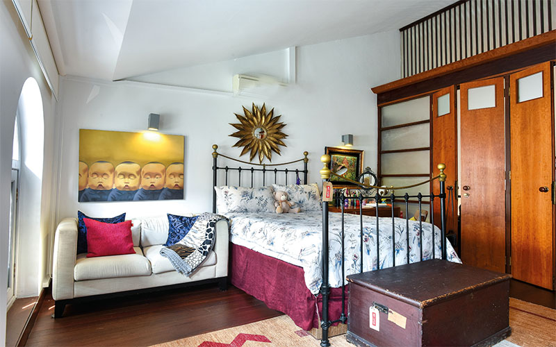 Paddy explains: “Our home is a culmination of nearly 20 years of life together. We’re avid collectors of art, sculpture and furniture.” The two have sourced pieces from all over the region and added them to the existing treasures they brought with them from London in 2007. “We purchased many of the homewares from the usual expat haunts in Singapore, most of which have sadly disappeared now, but the artworks literally span the globe!” I’m a fairly minimalist person – think “scandustrial” as my preferred style. But this house? This house talks. Every wall, every surface (including tops of tall wardrobes) have perfectly placed fragments of Paddy and Rob’s story – they are hung, sat and perched everywhere.