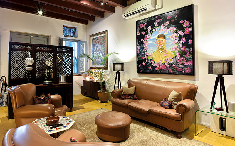 Paddy’s choice would be more challenging to carry out the door: a self-portrait of the artist Aiman with pink chrysanthemums that hangs in the living room. “It was painted by a talented young Singaporean artist and we purchased it from our favourite gallery, Art Porters, just around the corner in Spottiswoode Park Road. I love staring at it and sinking into the soft flowers while unwinding with a glass of wine.”