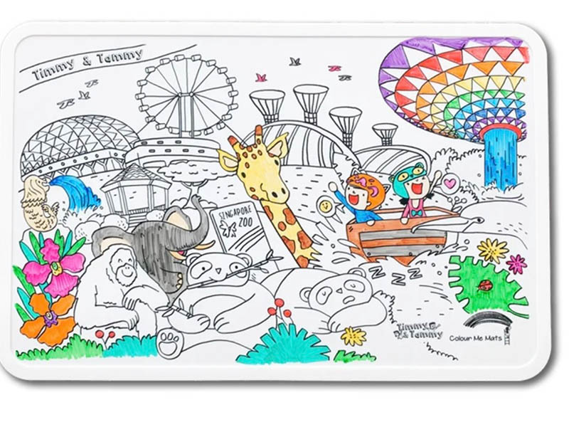Featuring Singapore’s heritage and characters from Timmy & Tammy, this bundle includes a reusable silicone colouring mat and markers. Ideal for home, travel or as a gift, the mats are designed with BPA-free, food-grade silicone and certified by FDA and SGS. The Colour Me Mats have a raised edge to contain spills, a smooth surface for easy cleaning, and a grippy bottom for stability on most surfaces. They roll up for portability and are compatible with alcohol-based dry erase markers.