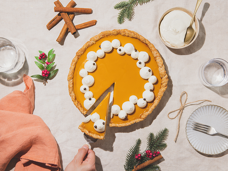 Dessert is classic and crowd-pleasing: a Butternut Pumpkin Pie ($90, serves 6–8) with sour-cream shortcrust, vanilla chantilly and chocolate pearls. Pre-order online for delivery or pickup 26 to 30 November.