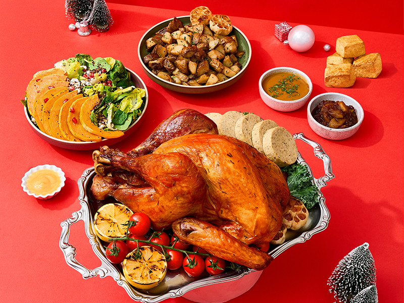 The Thanksgiving Whole Roasted Turkey Set ($268) takes the stress out of hosting. Each 5 to 6kg bird is roasted to order and comes with sourdough apricot and sage stuffing, cranberry-apple compote and turkey gravy – enough for about five to seven people. Sides are sorted too: Pumpkin and Feta Salad, rosemary and garlic duck-fat potatoes, and maple biscuits.