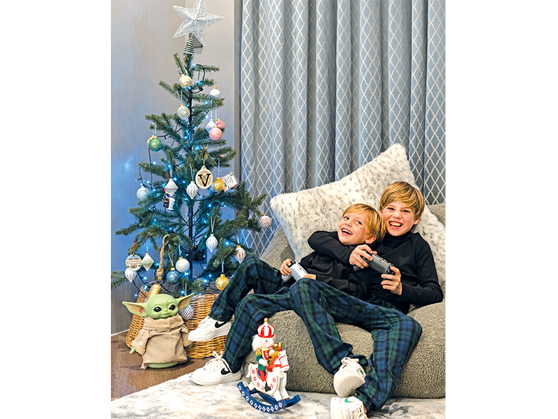 I love a traditional Christmas with eggnog and snow, but because it’s so warm here, I tried to capture that same idea with a modern tweak. A lot of our trees were brought along with us, and I have added touches of modern décor like mirror balls and velvet ornaments. I keep the kids’ tree with traditional ornaments they have made throughout the years, and I added a Barbie tree in my daughter’s room. I wanted to feel like walking into a winter wonderland, even if it’s still hot and humid outside.
