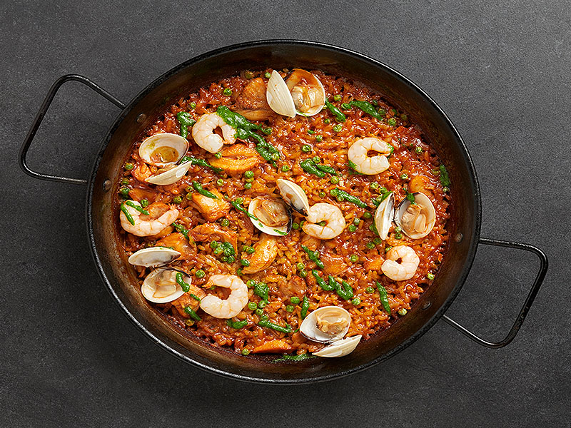 Though Chef Alonso hails from La Rioja in the north, he incorporates dishes that are representative of all corners of the country – from the well-known to the lesser-known regions. From the north, we’ve got calamares (grilled squid) and from the south, berenjenas con miel (eggplant chips with honey). There’s also a wide range of salads and paellas that come from the Mediterranean coasts.
