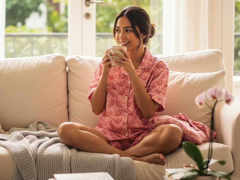 End the night in style with La Tienda’s Block Print Collection of pyjamas and kimonos, hand-printed by artisans in Jaipur. Made for warm, humid climates, the lightweight 100 percent cotton short-sleeve pyjamas are soft, breathable and come with a matching bag. For something a little more indulgent, the Velvet Kimonos are crafted from ultra-soft, locally sourced cotton and designed for slow, luxurious mornings.
