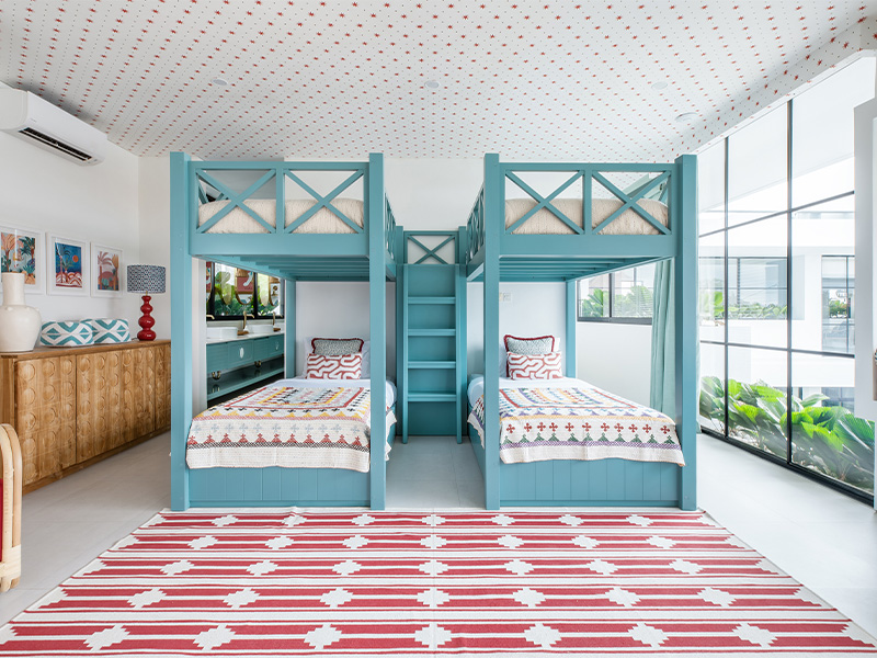 An architect designed the building and floor plan while E&A completed the interior. We provided the key requirements that we were looking for, including open-plan living, the number of beds and baths, a toy room, a pool bar area and so on. The architect came up with the floor plan and structure. Our interior designer was extremely thorough in designing a custom finish to every room and space, ensuring a unique experience to guests who stay at Umbala The House.