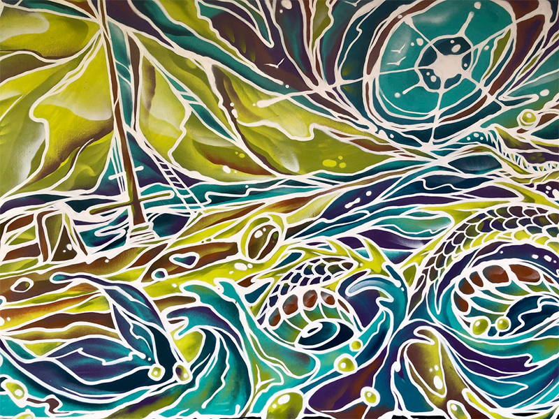 Bustling Little India is home to a striking mural, Light in Little India, by American artist Miles “Mac” MacGregor. His work is easily recognisable, with a distinct usage of ripple-like contour lines to depict lifelike human faces. Providing an interesting contrast is Green Goblins by Saigon-born artist Tyke Witnes, now based in California. Witnes grew up inspired by youth subcultures like skateboarding and graffiti.