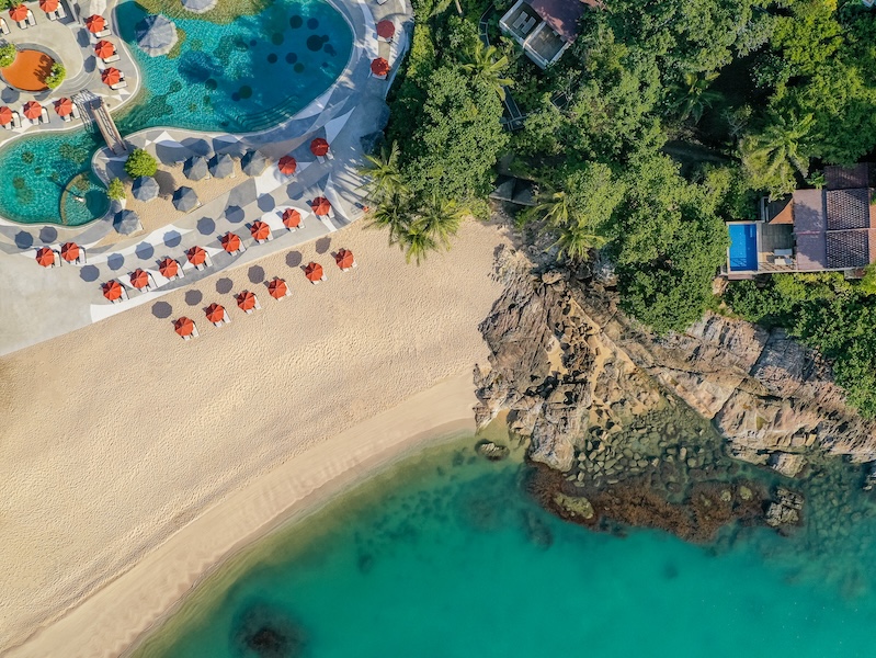 Built to protect the local ecosystem, the low-rise property merges modern and traditional Thai design. You can stay in one of the 44 rooms and suites or the pool residences. However, the star of the accommodation offerings is a four-bedroom villa made from restored antique golden teak carefully reassembled into a beautiful Thai abode.